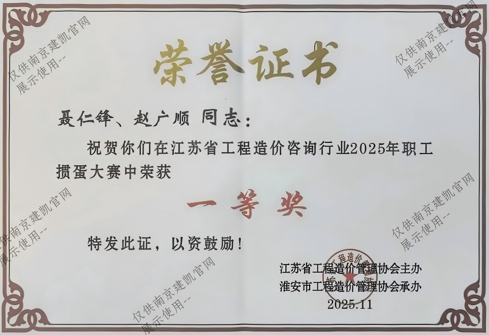 熱烈祝賀我司在江蘇省工程造價咨詢行業(yè)2025年職工摜蛋大賽中榮獲一等獎